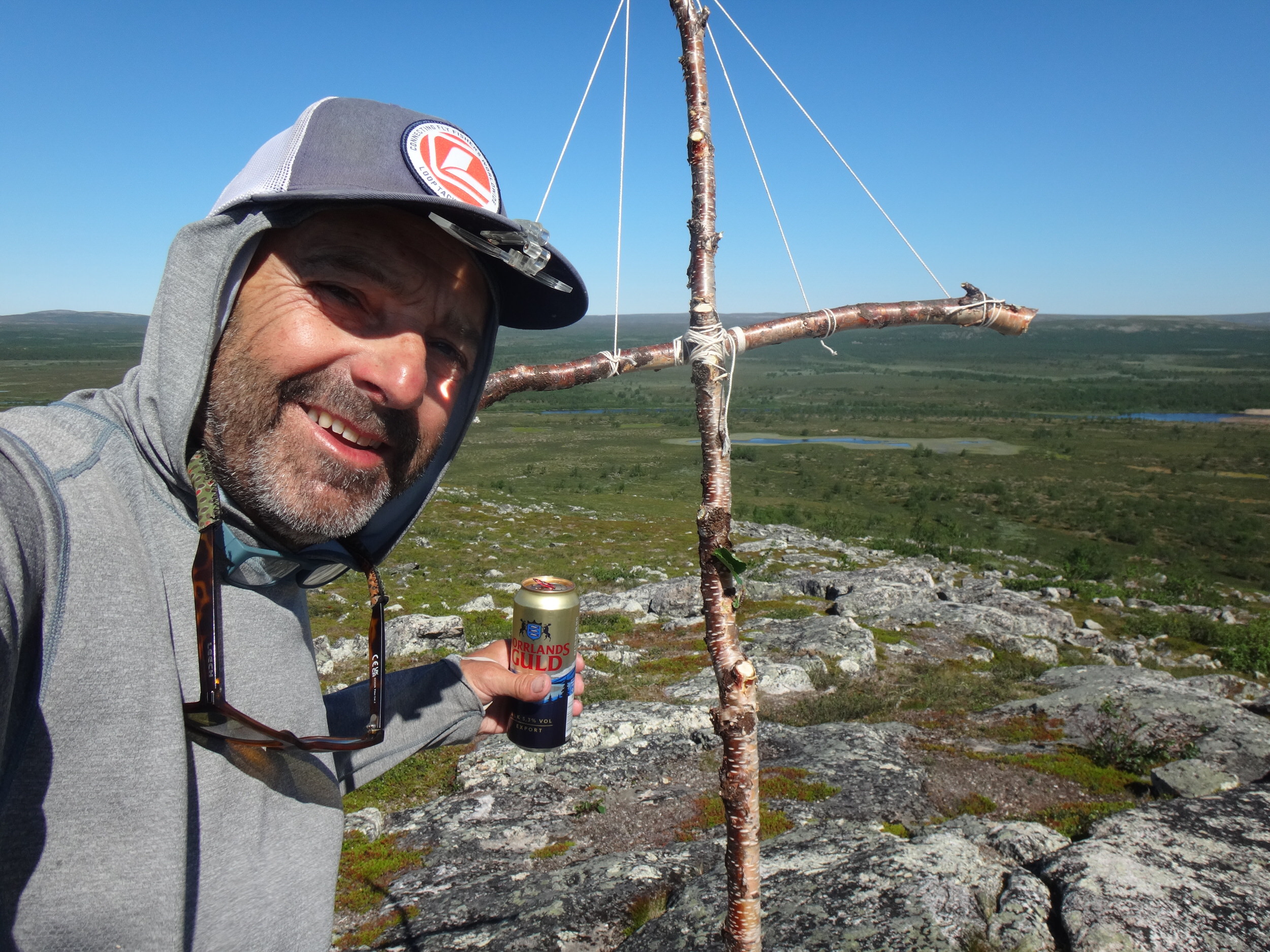 Ein letzter, schöner Moment am Ende der Woche war für mich war eine kleine Wandertour auf den nahegelegenen Berg. Oben angekommen errichtete ich ein Gipfelkreuz aus Birke und blickte voller Zufriedenheit und Stolz auf unser Camp herab.