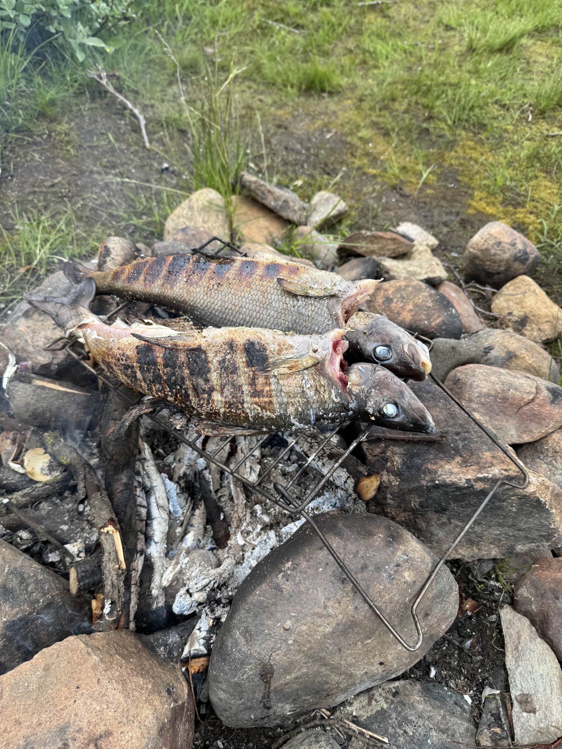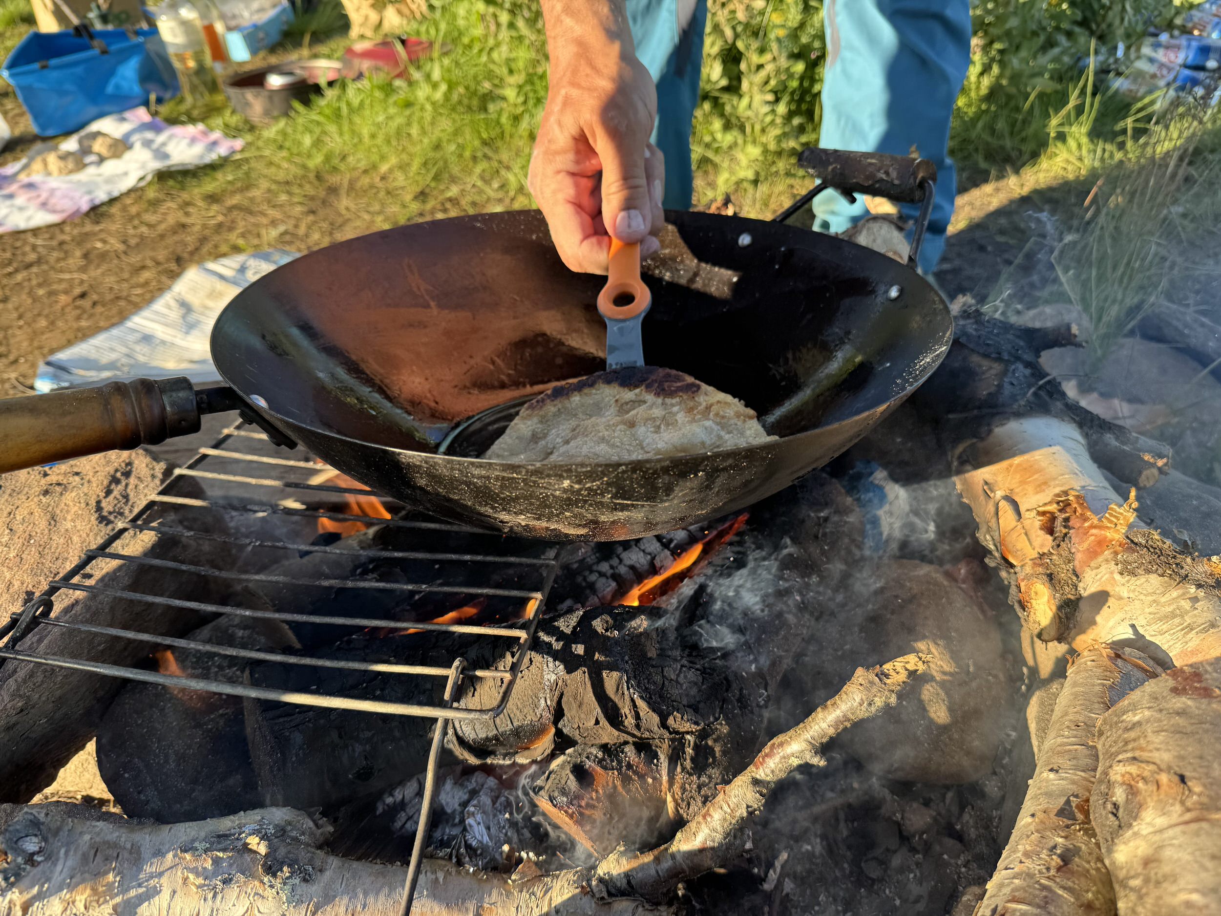 So verbrachten wir fantastische Tage mit Fischen, Floaten und herrlichem Lagerleben am Fluss. Dazu gehörte unter anderem das gesellige Kochen miteinander am offenen Feuer, was unseren Kochkünsten einiges abverlangte. Sogar Brot wurde gebacken.