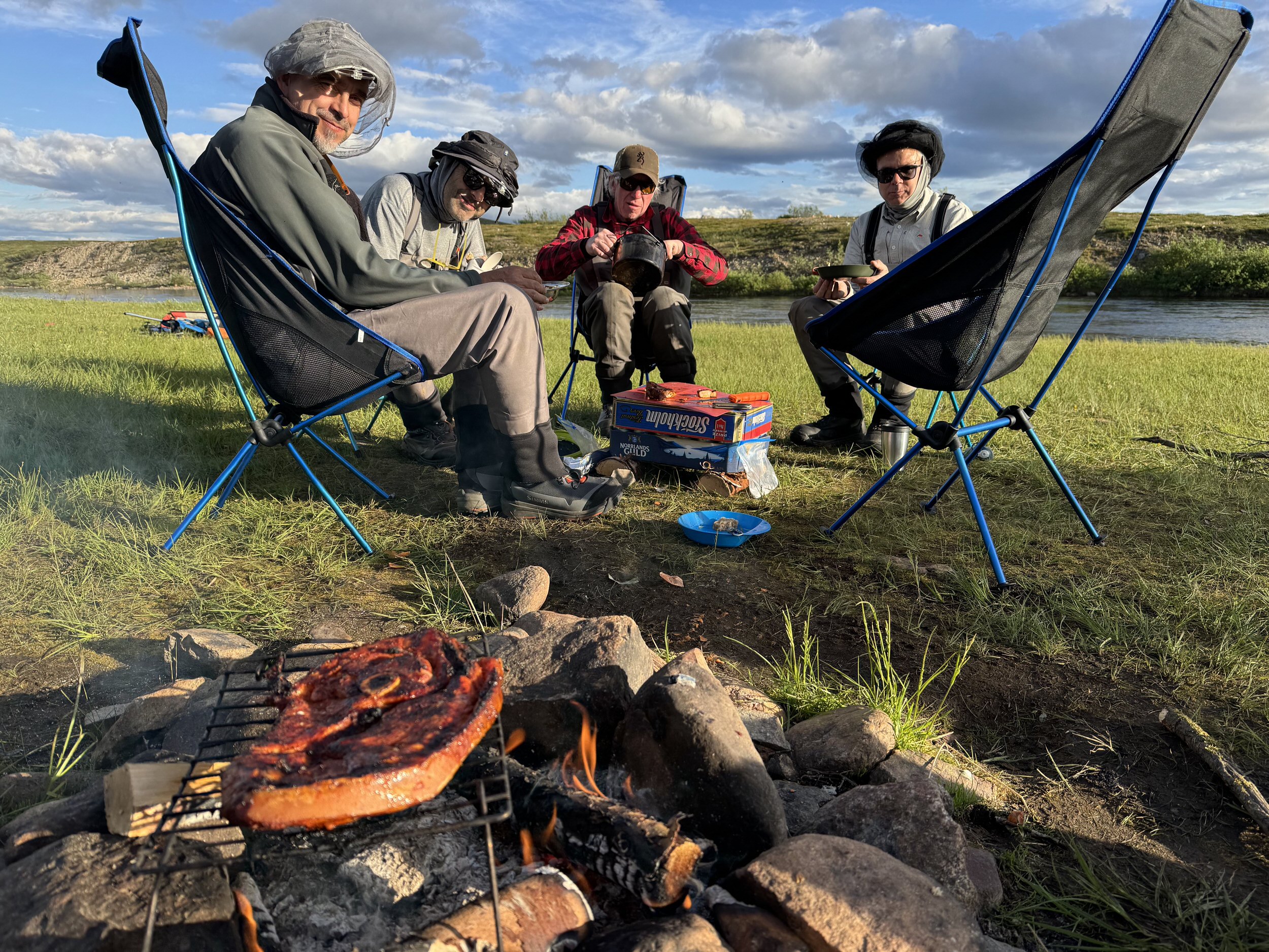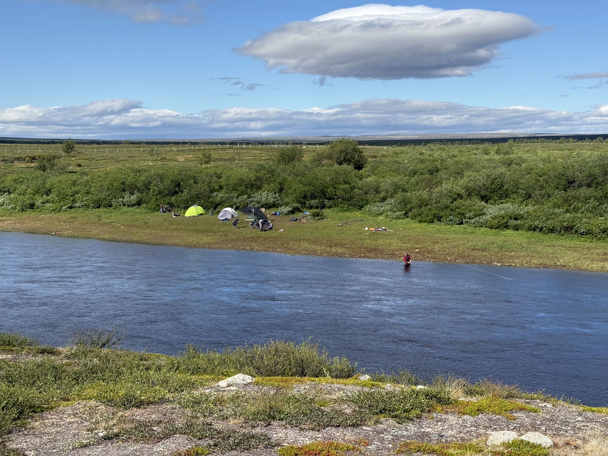 Nach einer Stunde Flug erreichten wir den uns bekannten, fantastischen Fluss, der uns bereits 2017 faszinierte. Wir wählten den gleichen Startpunkt für unsere Tour wie damals, lediglich das Camp errichteten wir diesmal direkt am Fluss. Begrüßt wurden wir, wie nicht anders zu erwarten, von Abermillionen von Mücken. Die Wasserbedingungen waren nach der ersten Einschätzung perfekt. Jetzt blieb nur noch zu hoffen, dass bereits Lachse den Fluss aufgestiegen waren.