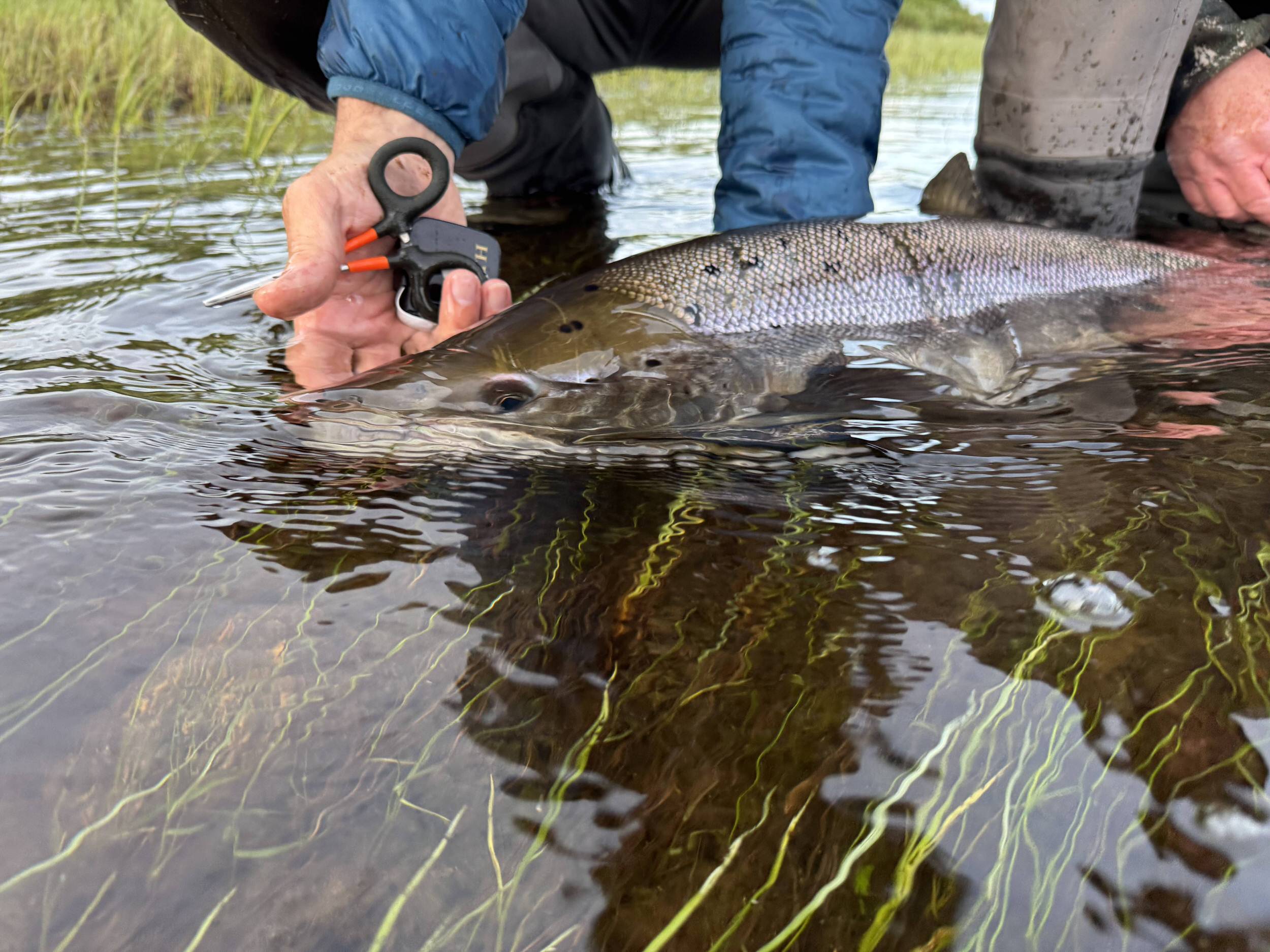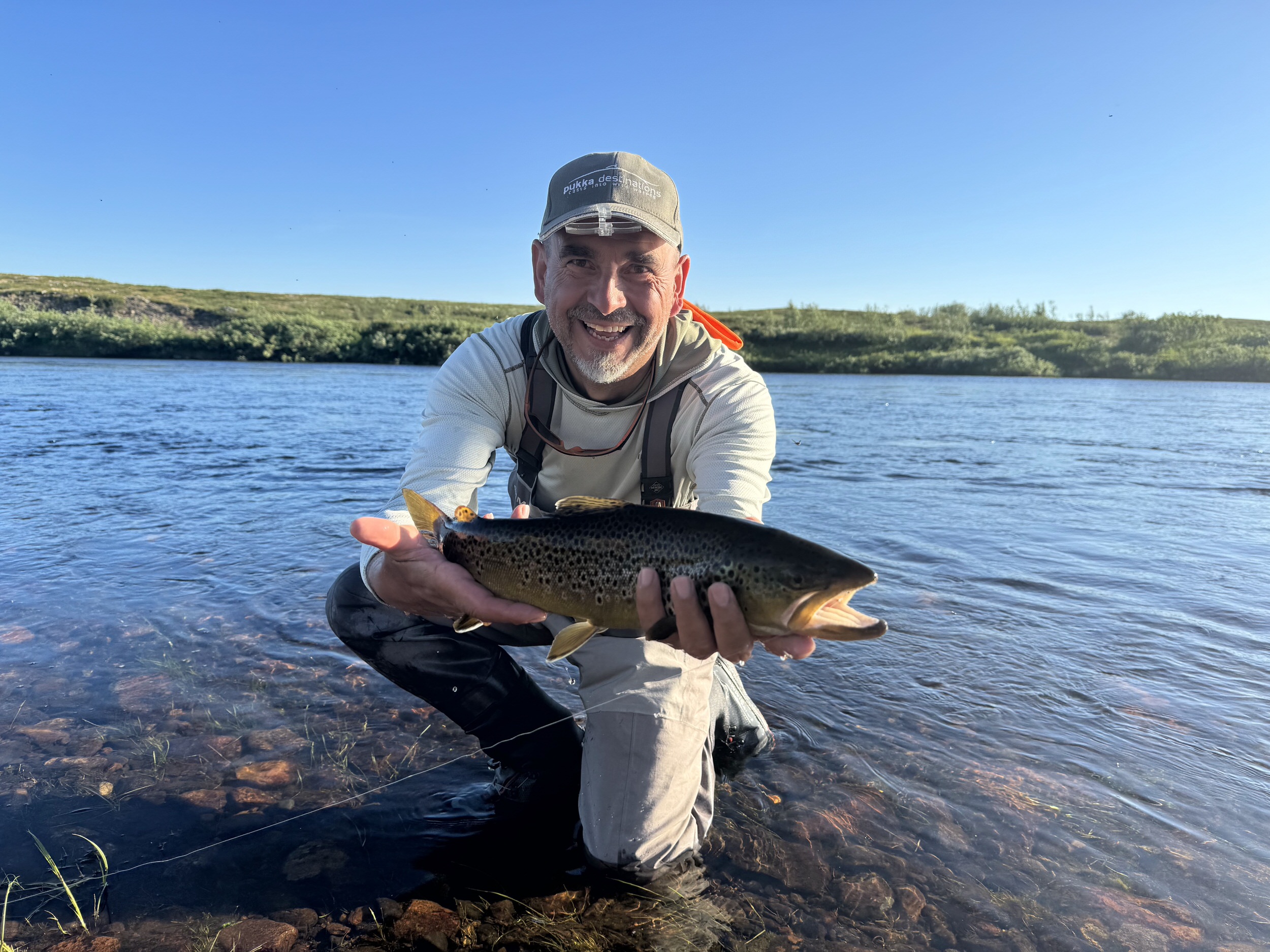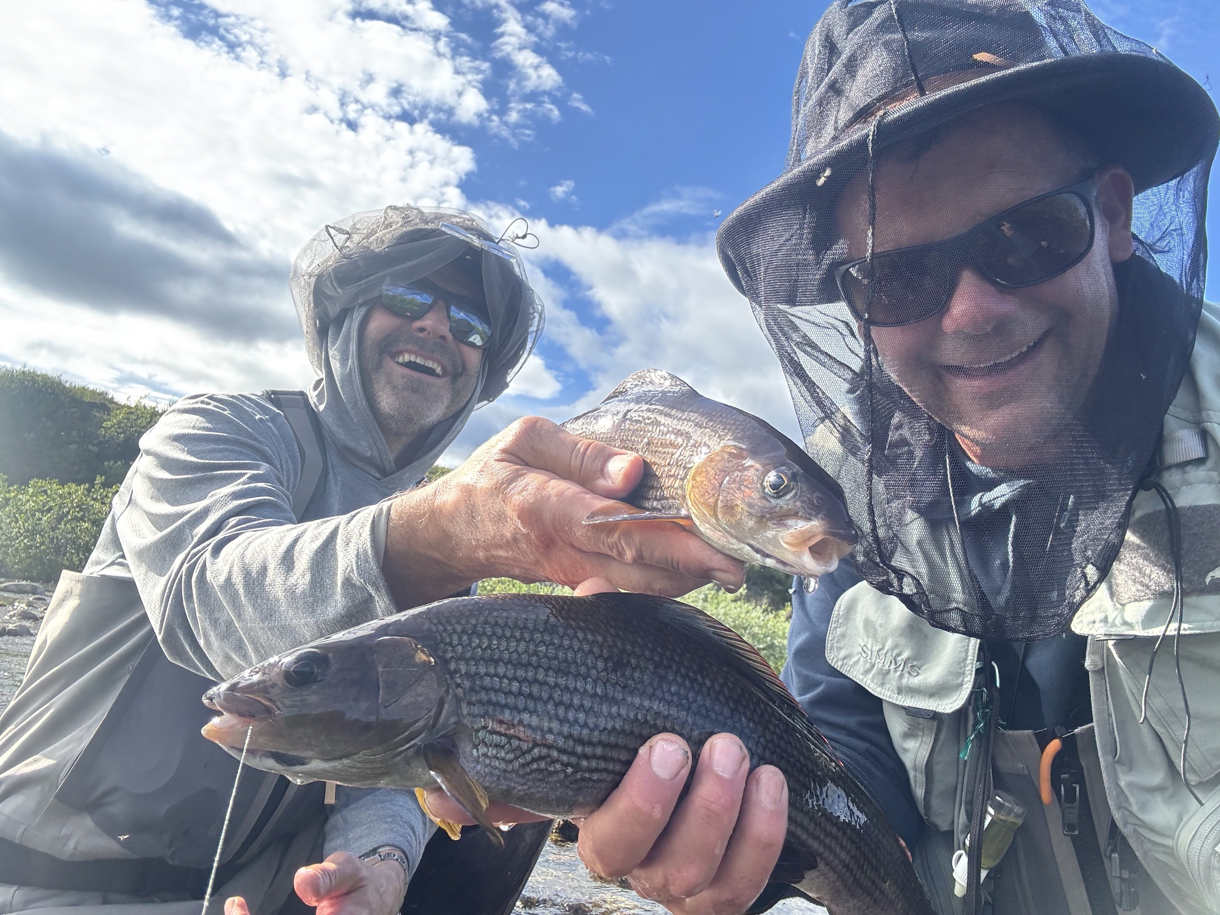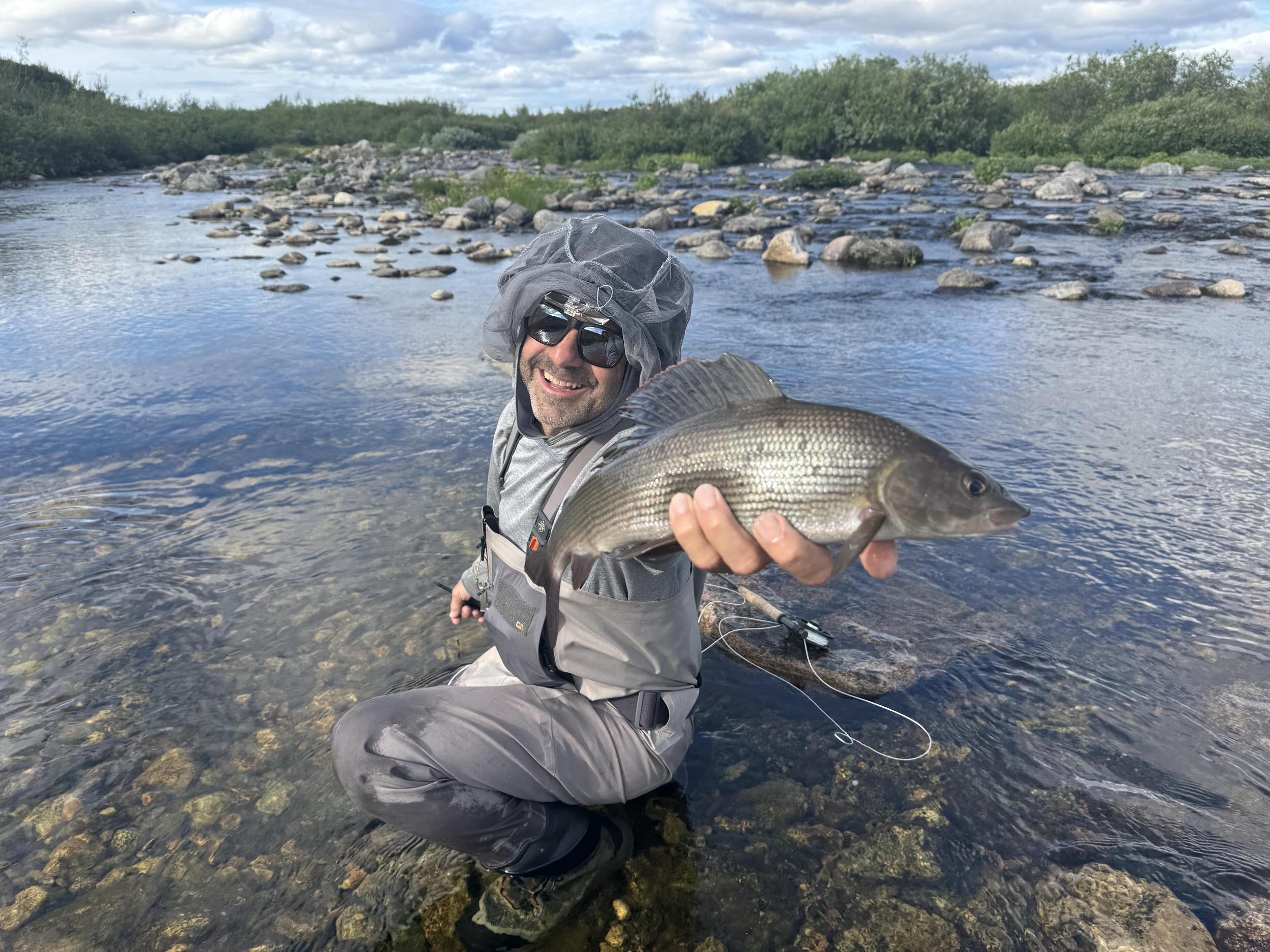 Im Gegensatz zu 2017, als wir den Fluss zu Fuß bis zum Ursprung erkundeten, konzentrierten wir uns 2025 auf vielversprechende Lachsspots in Campnähe. Bereits an den ersten zwei Tagen konnte unser Spezialist Gerald zwei tolle Lachse mit der Fliege überlisten, die beide wieder wohlbehalten in die Freiheit released wurden. Der Fluss ermöglichte auch eine hervorragende Fischerei auf Äschen- und Bachforellen. Vor allem die Nebenflüsse stachen mit einer unglaublichen Vielzahl an Äschenfängen hervor. Meiner Meinung nach wurden diese Zuflüsse bis dato zum Teil noch niemals befischt. Als Beifang stürzte sich zudem der ein oder andere Hecht auf unsere Streamer.